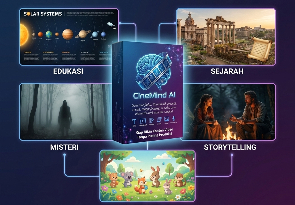 Tanpa langganan. Cukup isi ide singkat, pilih tema & durasi. Cinemind AI akan kerjakan alur cerita, script, prompt, footpage image AI, sampai suara
