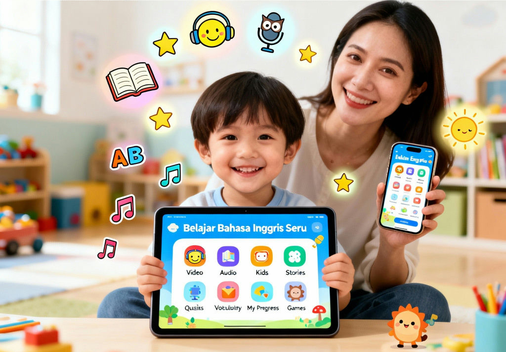 Belajar bahasa inggris anak: video, audio, cerita anak, kuis, kosakata, progress anak dan games, semua ada di MyEnglishKids